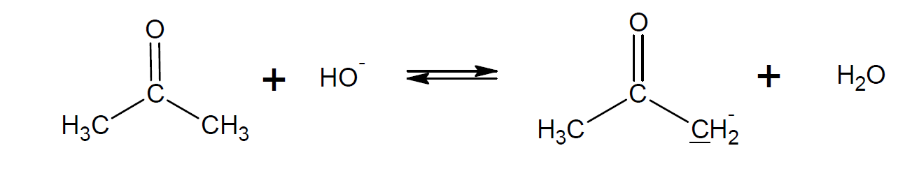 von Hydroxid-Ionen ein. Aceton reagiert dabei als Säure zu