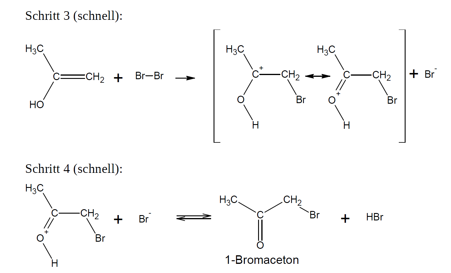 säurekatalysierte Bromierung. Die Reaktion verläuft in