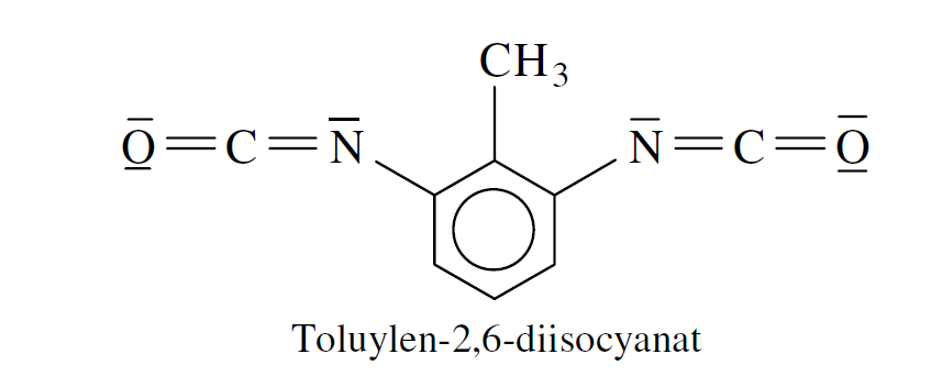 1 Formulieren Sie einen sinnvollen Strukturformelausschnitt aus dem Polyurethanmolekül, das aus 1,4-Butandiol und Toluylen-2,6-diisocyanat hergestellt wird. Geben Sie den Reaktionstyp an, nach dem diese Synthese verläuft.